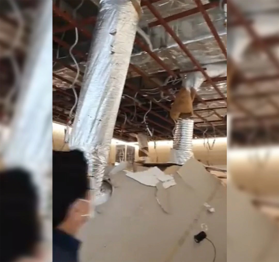 現代デパートの関係者は「館内放送を流し、安全上の問題はない状況」とした上で「事故が起きた売り場は現在、営業を中断し、天井の精密点検を行っている」と話した。