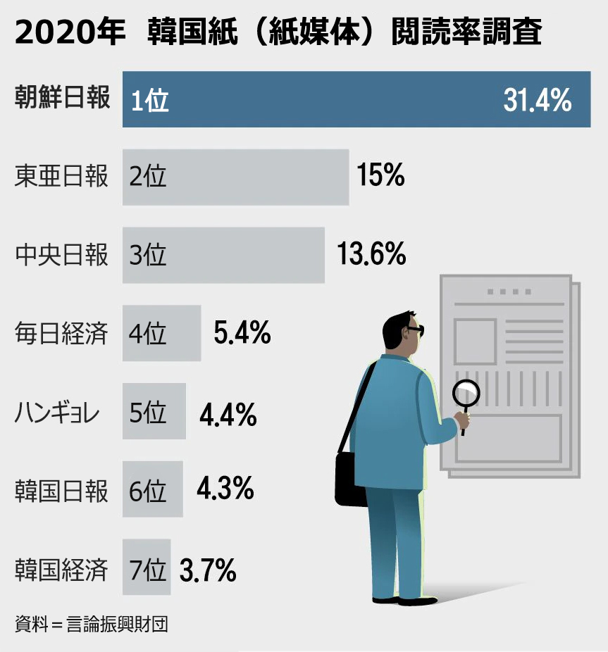 【表】韓国紙の閲読率ランキング、朝鮮日報は何位?