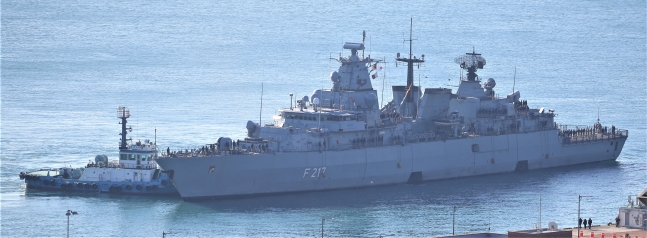 ▲ドイツ海軍のブランデンブルク級フリゲート艦「バイエルン」(F217、3600トン)。バイエルンは2日朝に釜山市南区の海軍作戦司令部釜山作戦基地に入港した。/キム・ドンファン記者