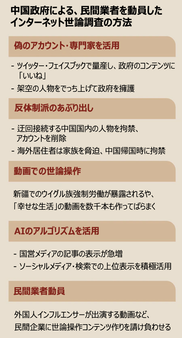 中国政府による、民間業者を動員したインターネット世論調査の方法