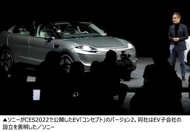 世界最大のIT見本市である「CES2022」の開幕前日の4日、会場のラスベガスコンベンションセンターでは、ソニーの展示ブースに設置されたステージに電気自動車(EV)「コンセプト」2台が滑り込んできた。ソニーグループの吉田憲一郎会長は「今年春にEV事業会社であるソニーモビリティを設立し、EVの市場投入を本格的に検討していく」と述べた。75年の歴史を持つ電子メーカーのソニーがEV子会社を設立し、自動..