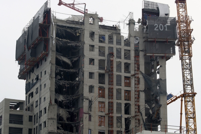 ある大手建設会社が作成した「光州花亭現代アイパーク事故報告書」からも手抜き工事の兆候が見て取れる。報告書は崩落事故の原因について「39階の打設加重が下の階(ピット階)のスラブの設計加重を超過したため」と推定している。事故当時、作業員らは最上階の39階床面にコンクリートを打設していたが、そのすぐ下には高さ1.5メートルのピット階があった。ピット階の下は38階だ。