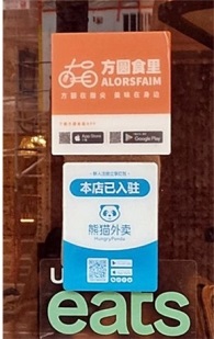 ▲中国系の人々が経営する韓国料理店では「HungryPanda(熊猫外売)」や「ALORSFAIM(方円食里)」など中国系デリバリー・アプリ=写真右=を利用したデリバリー・サービスも行っている。写真=フランスのパリ市内で チョン・チョルファン特派員