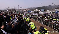 朴槿恵(パク・クンヘ)前大統領が乗った車が24日午後、大邱市達城郡瑜伽邑にある朴前大統領の私邸に到着した。写真は、歓呼して迎える市民たち。