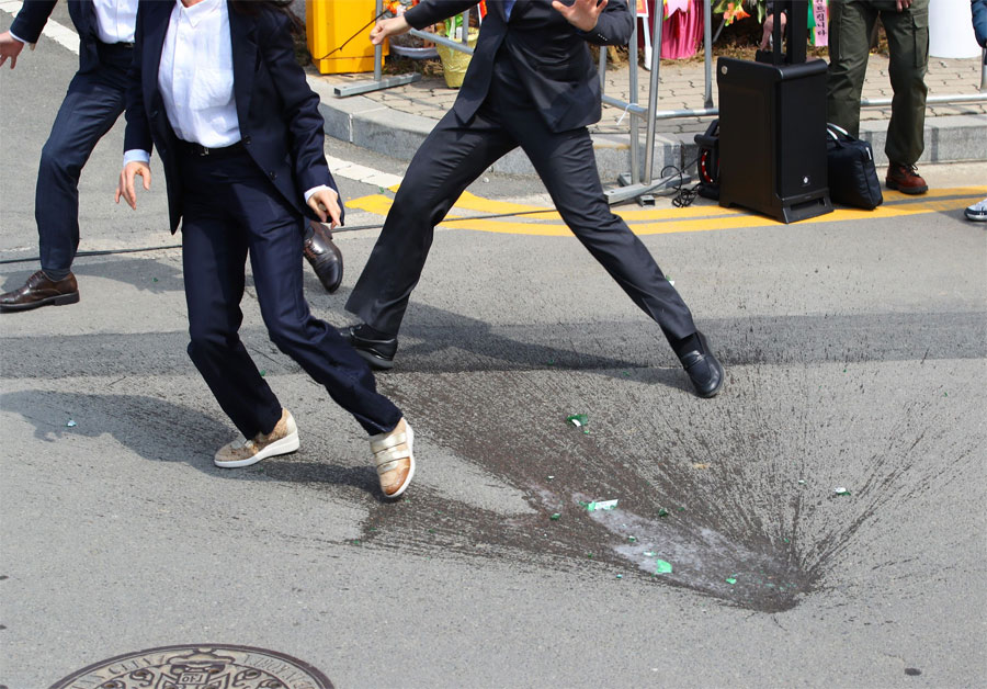 警察などによると、男は同日午後12時17分ごろ、私邸前で記者団にあいさつをしていた朴前大統領に向かって焼酎の瓶を投げつけた。瓶は朴前大統領から10メートル離れた地点に落ちて割れた。ガラスの破片が飛び散ったが、けが人はいなかった。