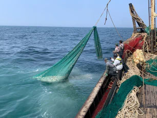 発見された漁網は長さ250メートル、幅75メートルに達する大型のもので、魚が集まる先端部分も網目の大きさが2センチと小さく、稚魚まで一網打尽に捕獲できる漁具だ。