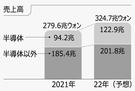 半導体部門は今年、サーバー用を中心としたメモリー半導体需要のおかげで、2018年の「メモリースーパーサイクル(好況)」を上回る過去最大の業績を上げるとみられる。インフレ、利上げで世界的な消費低迷を懸念する声もあるが、半導体に対する企業の投資は相対的に影響が少ないためだ。