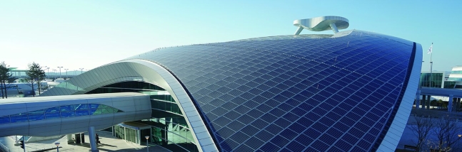 ▲仁川国際空港第2旅客ターミナルの上に設置された太陽光発電設備。/仁川空港公社
