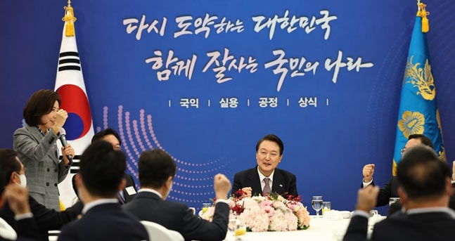 尹大統領はこの日、ソウル市竜山区の国防コンベンションセンターで就任後初めて院外党協委員長らと昼食懇談会を行った。尹大統領は「国内も..