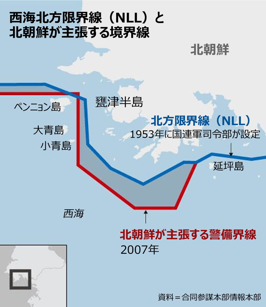 【図】西海北方限界線(NLL)と北が主張する境界線
