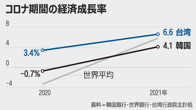 【グラフ】韓国と台湾、コロナ期間の経済成長率