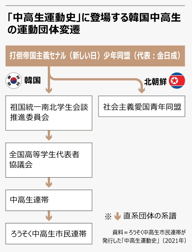 特にこの本はろうそく連帯を「打倒帝国主義セナル少年同盟」の系譜を組む団体として示した「韓国中高校生運動団体系譜図」を掲載している。この系譜図には祖国統一南北学生会談推進委員会(1960-1961)、全国高等学生代表者協議会、中高生連帯などの韓国団体も含まれている。