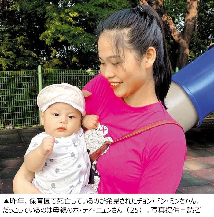 【写真】昨年、保育園で死亡しているのが発見されたチョン・ドン・ミンちゃん。だっこしているのは母親のボ・ティ・ニュン..