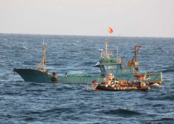 「K5拳銃を用いて警告射撃の後、速やかに操舵室を開放、違法操業中国漁船を制圧しました」
