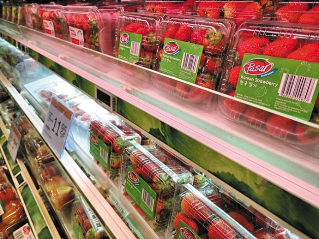 ▲13日、シンガポールのタンジョン・パガーにある大型スーパーに陳列された韓国産イチゴ。写真=ピョ・テジュン記者