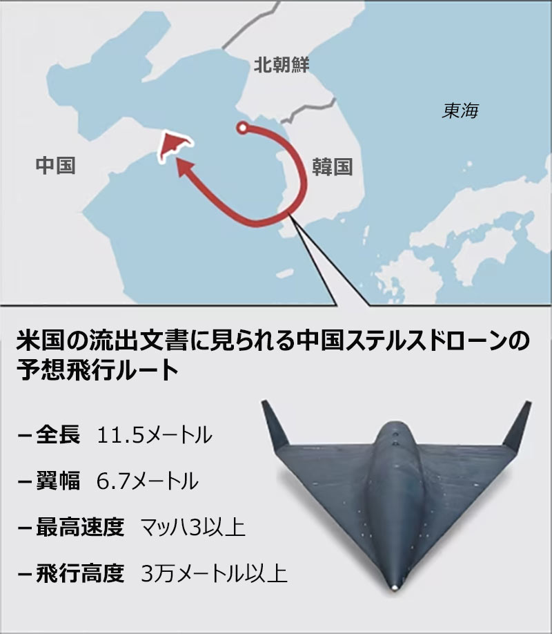 中国の最新型超音速ステルス無人偵察機(ドローン)が韓国領空を侵犯して平沢・群山など在韓米軍基地を偵察する可能性がある、と米情報当局が判断していることが明らかになった。中国の超音速ステルスドローンは3万メートル以上の高高度をマッハ3(音速の3倍)以上の超高速で飛行でき、レーダーにもあまり捕捉されず、現在の韓米の対空ミサイルなどといった迎撃手段では撃墜が事実上不可能だという。