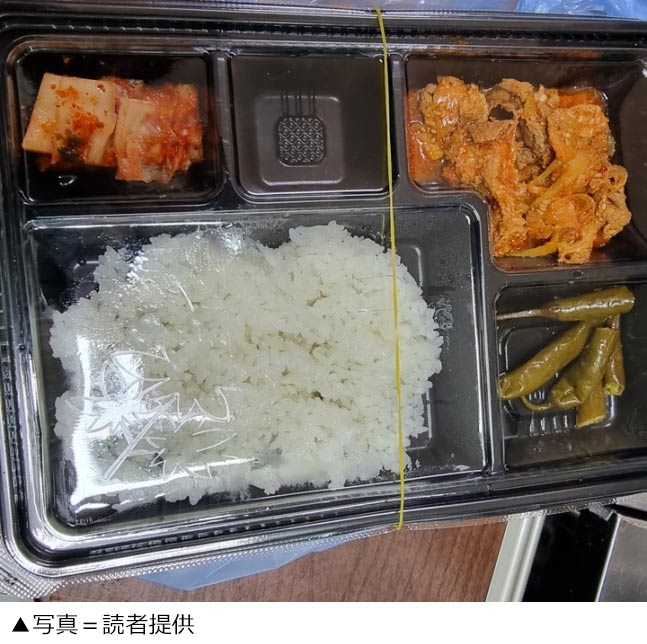 ニュース・メディア「NEWSIS」の取材によると、被災者たちがこの日、昼食として受け取った弁当には白いご飯..