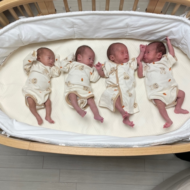 SKオンは「初産で四つ子を自然分べんしたのは韓国で初めてだ」と明らかにした。