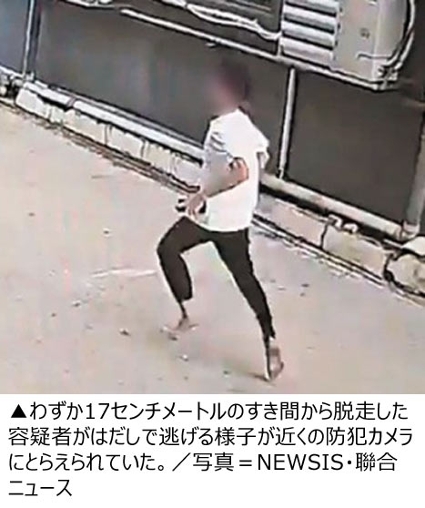 小柄な容疑者たちは午前6時ごろから腰を曲げて高さ1メートルの所にあるこの窓のすき間に頭や足を押し込んで1人ずつ地区隊からこっそり脱走した。警察は午前6時40分ごろ、これに気づいた。地区隊には当時、10人余りの勤務者がいたが、容疑者たちの脱走に気づかなかったという。
