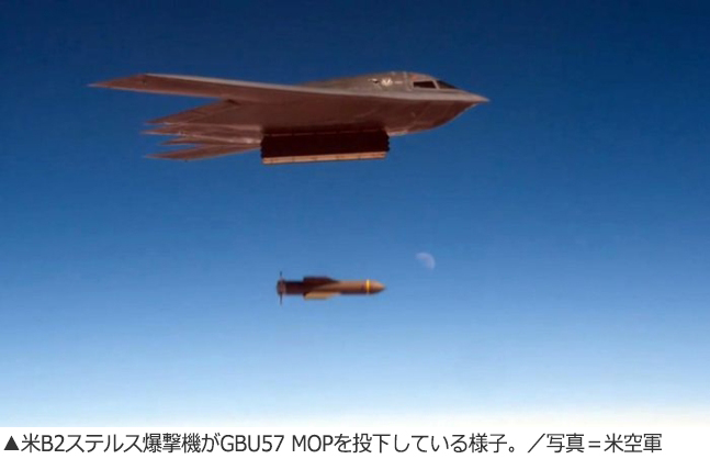 米空軍は先月初め、ミズーリ州にあるホワイトマン空軍基地のフェイスブックでGBU57 MOPの写真を公開した。空軍は、写真の説明で「性能実験のため、2発のMOPを受領した」と明かしたという。AP通信が5niti 月22日(現地時間)に報じた。AP通信は、ネット・ニュース・サイト「ウォー・ゾーン(The Warzone)」が初めてこのフェイスブックの写真を報じた後、米空軍に対し写真について質問したが回答はなく、わずか1日でコンテンツも姿を消した、と伝えた。