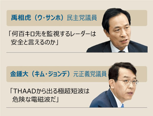 デモ会場の外でも、民主党関係者らがTHAADに関する一方的な主張を展開した。民主党の李在明(イ・ジェミョン)代表は城南市長時代の16年7月、フェイスブックに「THAADレーダーの電磁波は人体に致命的な影響を与えるとされている」と書いた。
