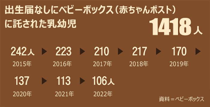 【表】韓国で出生届なしに赤ちゃんポストに託された乳幼児数の推移