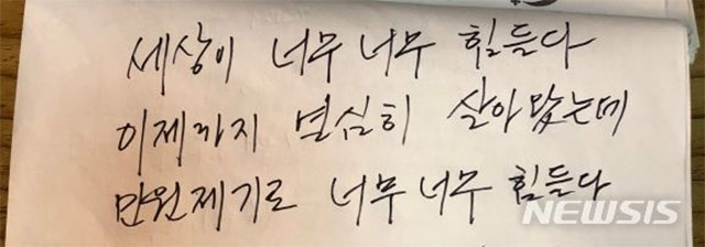 大韓韓豚協会は遺族の同意を得て遺書の内容の一部を公表した。Aさんが残した遺書には「この世は本当につらい。これまで一生懸命生きてきたが、苦情で本当につらすぎる」「周辺住民の方々、これまで本当に申し訳ありませんでした」と書かれていた。