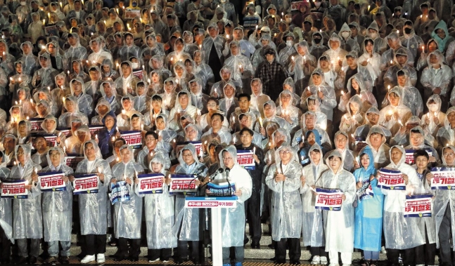 ▲ろうそく集会を開いた共に民主党。写真=李徳熏(イ・ドクフン)記者