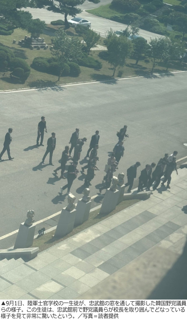 9月1日、陸軍士官学校(陸士)出身で野党所属のある国会議員が陸士を訪れた。陸士の忠武館前にある洪範図(ホン・ボムド)将軍の胸像移転問題に関連する政務活動だったという。当初、陸士側は不許可としていた日程だった。「生徒の教育条件の保障などを考慮し、校庭内での議員らの活動は適切ではないと判断したため」だった。その代わりに陸士は「生徒の教育館である忠武館には行かず、接見室で校長と面談する条件」でこの議員の訪問を受けることになったという。