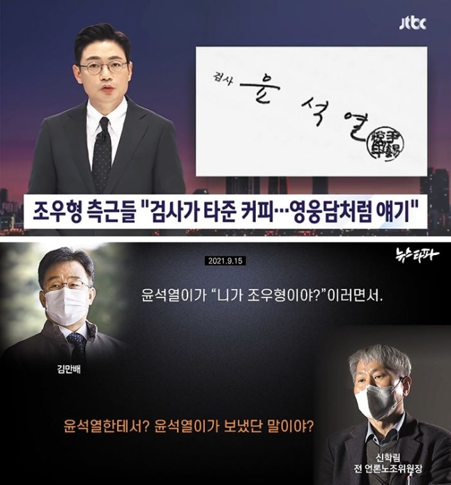 【写真】韓国大統領室高官が「まれに見る大統領選工作事件」と評したJTBC報道(上)と2022年韓国大統領選直前に引用・拡散されたニュース打破「虚偽インタビュー」
