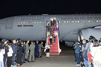 【NEWSIS】イスラエルとイスラム組織ハマスの間で軍事衝突が続いているのを受け、14日夜に京畿道城南市内のソウル空港に韓国軍輸送機KC-330(シグナス)が到着した。写真はタラップを降りるイスラエル在住者・滞在者たち。退避したのは韓国人163人、日本人51人、シンガポール人6人の計220人だ。
