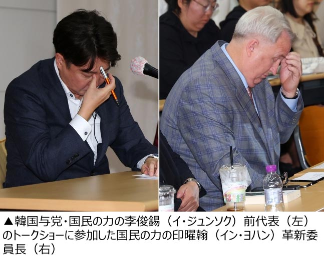【写真】李俊錫・前代表と印曜翰・革新委員長