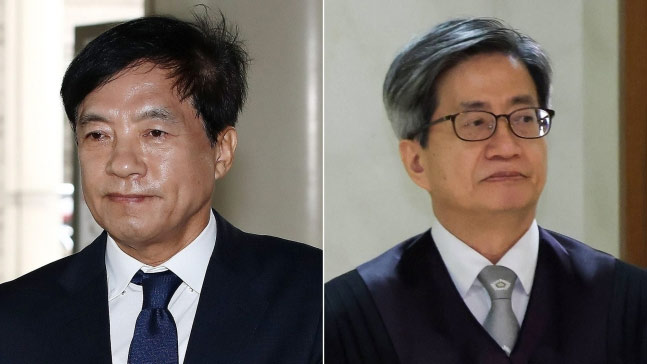▲李盛潤・元ソウル中央地検長(左)と金命洙元大法院長/ニュース1・聯合ニュース