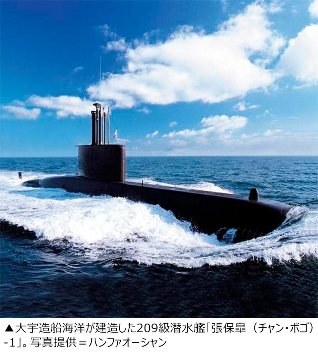 台湾に流出した潜水艦設計図面は、大宇造船海洋時代の2011年、インドネシアから11億ドル(現在のレートで約1590億円)で3隻受注したDSME 1400モデルのものだ。DSME 1400は韓国の209級潜水艦「張保皐(チャン・ボゴ)-1」の派生型だ。