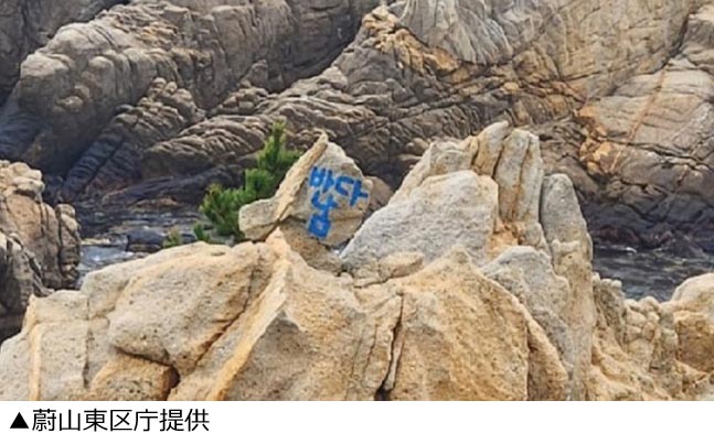 蔚山の大王岩公園にある奇岩怪石に落書きをしたとして、蔚山東部警察署は24日、60代の女を自然毀損の疑いで在宅起訴したと発表した。