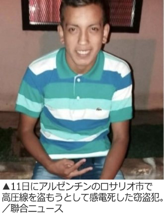 アルゼンチンで、高圧線を盗もうとした20代の男性が全身にやけどを負い、2日後に死亡したことが分かった。現地メディア「日刊ラ・ナシオン」などが13日(現地時間)、報じた。