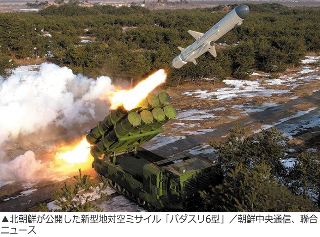 【写真】北朝鮮が公開した新型地対空ミサイル「パダスリ6型」