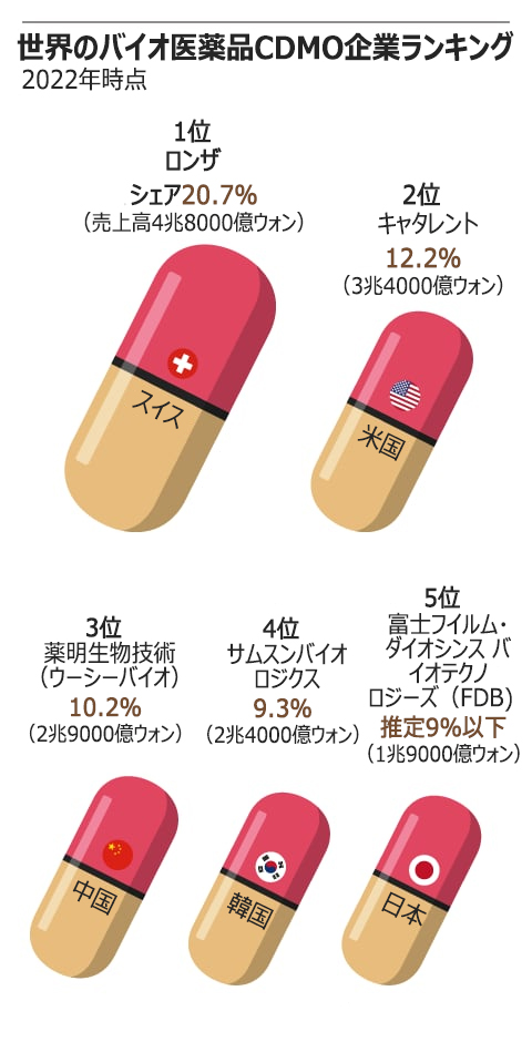 バイオ業界では、米国の制裁強化が世界市場でウーシーバイオロジクスと激しく競争してきた韓国のサムスンバイオロジクスには追い風になるとの見方がある。2022年時点で業界4位のサムスンバイオロジクスは、ウーシーバイオロジクスとの売上高の差が5000億ウォン前後だが、CDMO契約は1件当たり1億ドル(約1300億ウォン)を超えるケースが多いgため、いつでも逆転の可能性がある。バイオ業界関係者は「安定性と信頼が重要なCDMO業界の特性上、ウーシーバイオロジクスの顧客はサムスンバイオロジクスを選ぶ確率が高い」とした上で、「日本の富士フイルムなど上位5位以内の企業が攻勢を見せているため、サムスンバイオロジクスも積極的な投資で対応すべきだ」と指摘した。