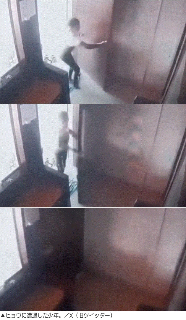 ▲ヒョウに遭遇した少年。/X(旧ツイッター)