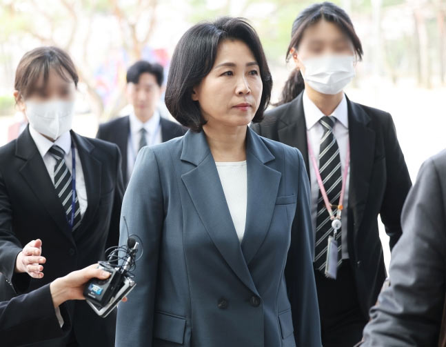 ▲公職選挙法違反容疑で裁判にかけられた「共に民主党」李在明代表の配偶者・金恵京被告が8日、水原地裁で開かれた2回目の公判に出廷する様子。/聯合ニュース