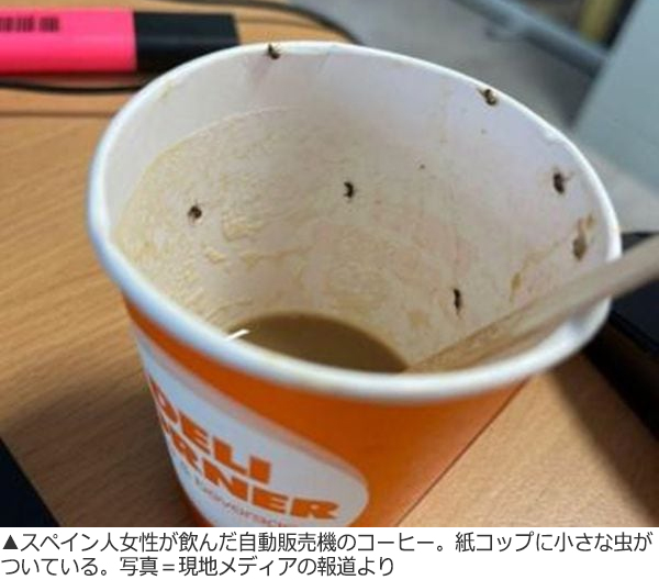 あるスペイン人女性が空港の自動販売機のコーヒーを飲み、命が危ぶまれる状態に陥るという事故が発生した。コーヒーの中に浮かんでいた虫に気付かずに飲んでしまい、「アナフィラキシー・ショック」を起こしたのだ。スペインの複数のメディアが24日(現地時間)に報道した。