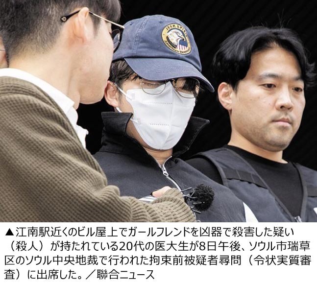 ソウルの江南駅近くのビル屋上でガールフレンドを凶器で刺して殺害した疑いが持たれている医大生、チェ容疑者(25)の身柄を拘束するかどうかが8日に決まった。