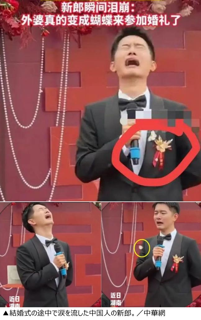亡くなった祖母を思い出し、結婚式場で涙を流した新郎のエピソードが中国で話題になっている。中華網など中国の現地メディアが7日、報じた。