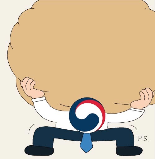 国際通貨基金(IMF)が4月に公表した財政点検報告書(Fiscal Monitor)などによると、昨年韓国の政府債務の対GDP比は55.2%だった。2013年の37.7%に比べ17.5ポイント上昇した。非基軸通貨国11カ国のうちシンガポール(63.9ポイント)に次ぐ増加幅だ。