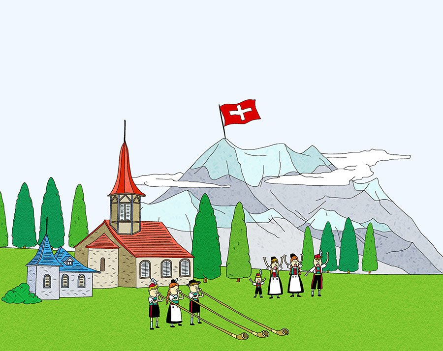 ホテル・レスリーの正面には探偵小説の主人公シャーロック・ホームズが宿敵との決闘で一緒に落ちて死んだライヘンバッハの滝と万年雪を戴くアルプスの山々がまるで絵画のように広がっている(作家アーサー・コナン・ドイルは読者たちの不満の声を受け、後続作品でホームズを蘇らせた)。