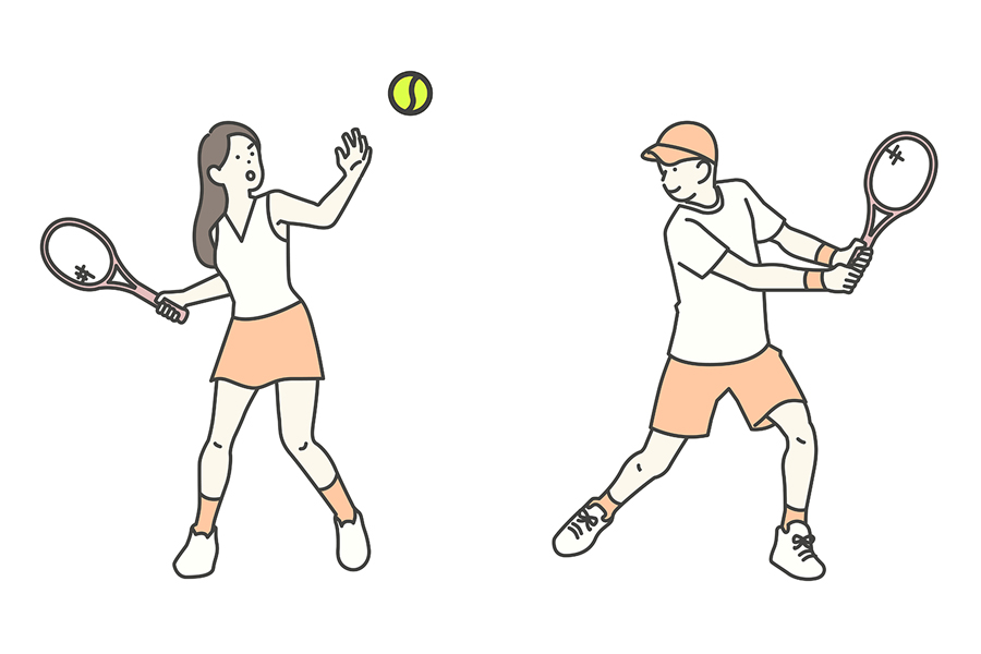 カップルは人通りの多い出口近くでラケットを大きく振り回しながら、テニスボールを追いかけて走り回っている。周囲を人が通ってもお構いなしでボールを打ち合っている。ボールを追いかけて、通り過ぎる人にぶつかりそうになる場面もあったが、それでもテニスを続けている。
