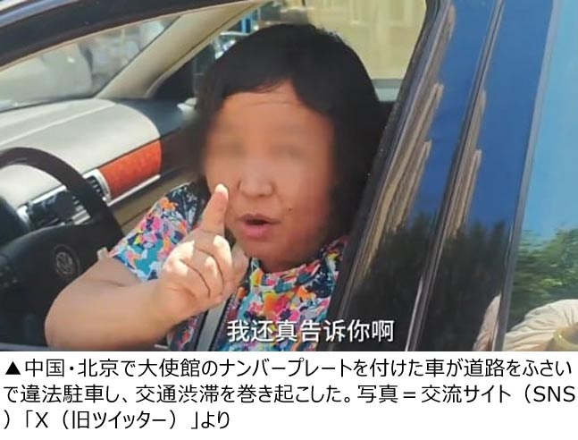 中国・北京で大使館のナンバープレートを付けた車が道路をふさいで違法駐車し、交通渋滞を巻き起こした。この車を運転していたのは中国の元高官で国際機関トップだったが、外交官の免責特権を主張し、罵倒した。中国現地メディアが20日(現地時間)に報道した。