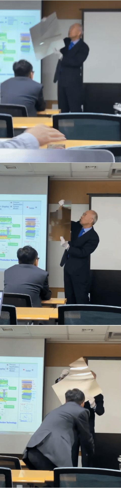 【動画】最新技術の発表中に肝心のガラス基板が「パキッ」…会場騒然