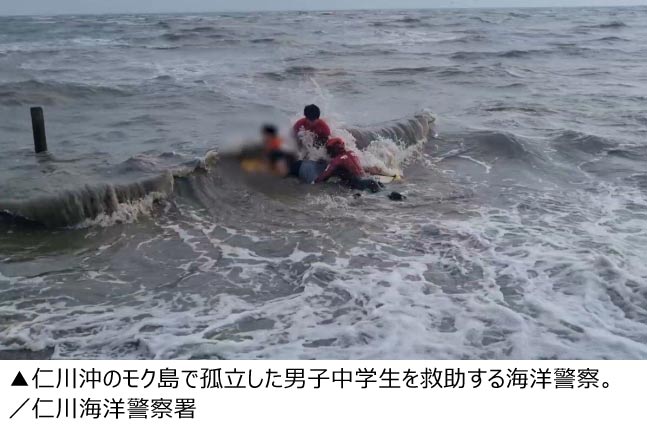 海洋警察によると、6日午後3時26分ごろ、仁川沖の無人島「モク島」で10代の男子中学生が孤立していると海洋警察に通報があった。