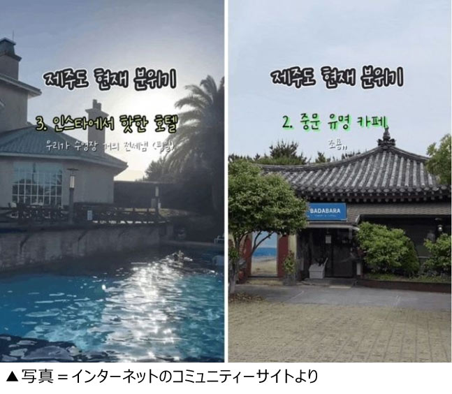 インターネットのコミュニティーサイトには8日「済州島の有名な観光地の近況」と題する文章のスクリーンショットと動画が共に投稿された。この投稿はこの日午後12時現在で15万1000回以上の閲覧数を記録するなど高い注目を集めた。